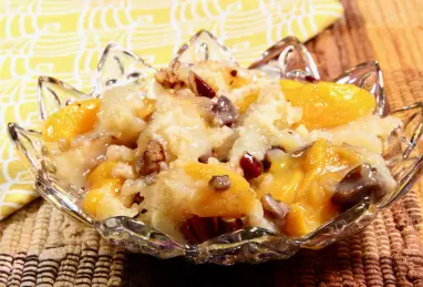 Simply delicious and easy Southern peach cobbler. Serve with vanilla ice cream or whipped topping and drizzle with caramel topping.